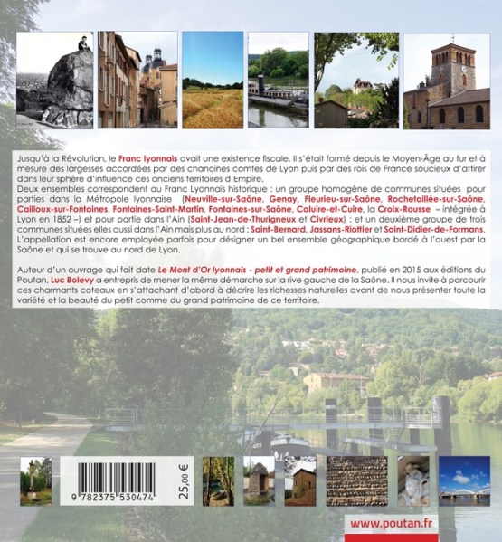 Auteur de l’ouvrage Le Mont d’Or lyonnais – petit et grand patrimoine, publié en 2015 aux éditions du Poutan, Luc Bolevy a entrepris de mener la même démarche sur la rive gauche de la Saône. Il nous invite à parcourir ces charmants coteaux en s’attachant d’abord à décrire les richesses naturelles avant de présenter toute la variété et la beauté du petit comme du grand patrimoine de ce territoire.